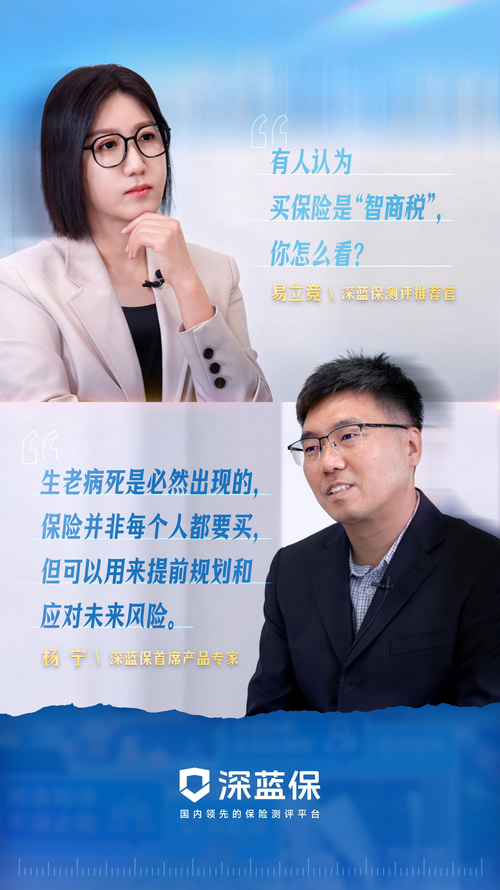 易立竞老师把所有大家最真实、最直接的困惑,都抛给了深蓝保的专家团。如果你也曾在保险面前犹豫、困惑,希望这期节目能给你一份清醒的底气!